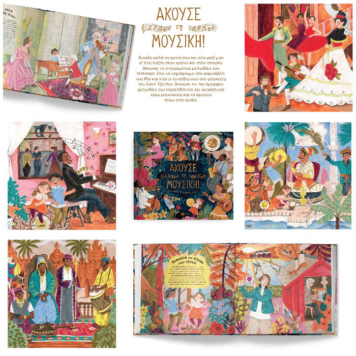 Πάτησε τη μουσική νότα σε κάθε σελίδα για να ακούσεις τη μουσική κι ύστερα άκουσε ξανά και ξανά όλες τις μουσικές στο τέλος του βιβλίου.