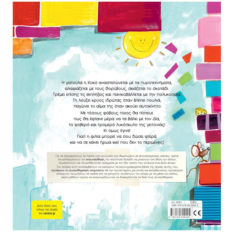 Το βιβλίο: Η γατούλα η Κοκό φοβάται πολλά. Και τη σκιά της ακόμα. Με τόσους φόβους ποιος θα πίστευε πως θα έφτανε μέρα να τα βάλει με τον Δία, το τρομερό λυκόσκυλο της γειτονιάς. Κι όμως, εκείνη το τολμάει και γίνεται... ήρωας από αγάπη!