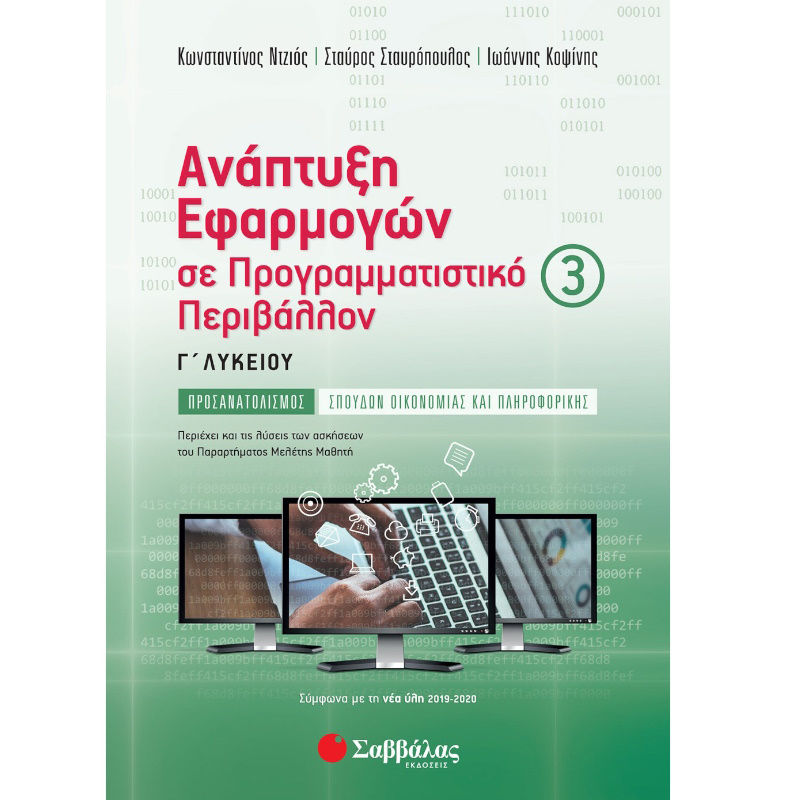 Το βιβλίο αυτό καλύπτει την καινούργια ύλη του νέου προγράμματος σπουδών 2019-2020 για το μάθημα «Ανάπτυξη Εφαρμογών σε Προγραμματιστικό Περιβάλλον» της Γ’ Λυκείου.