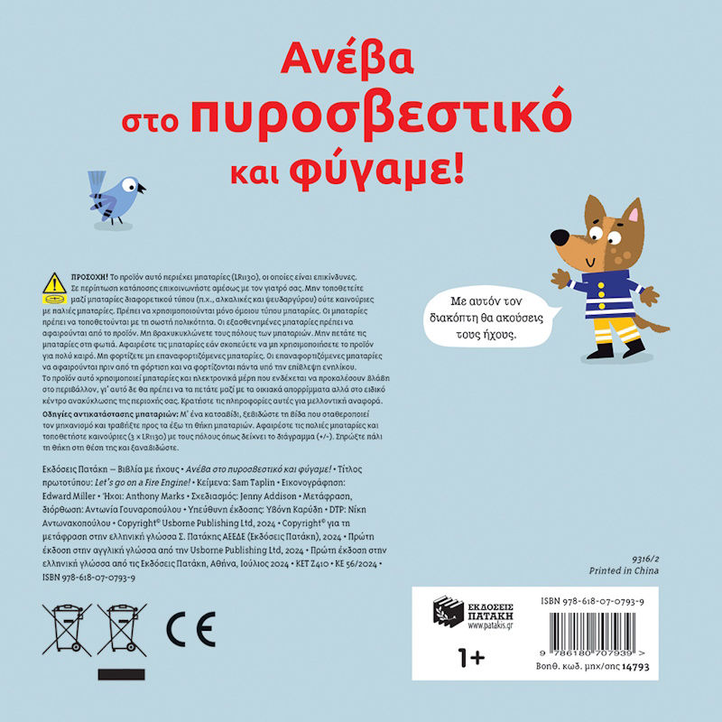 Ανακαλύψτε όλο τον ενθουσιασμό της μετακίνησης με ένα πυροσβεστικό όχημα καθώς πατάτε τα κουμπιά για να ακούσετε τους ζωντανούς ήχους. Ένας τέλειος, διασκεδαστικός τρόπος για τα παιδιά να μάθουν τι κάνει ένα πυροσβεστικό που ετοιμάζεται να σώσει την πόλη!