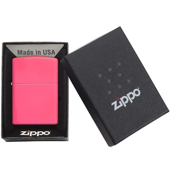 Αναπτήρας Zippo Neon Pink. Διατίθεται συσκευασμένο σε συσκευασία δώρου. Για βέλτιστη απόδοση γεμίστε με καύσιμο αναπτήρα Zippo.
