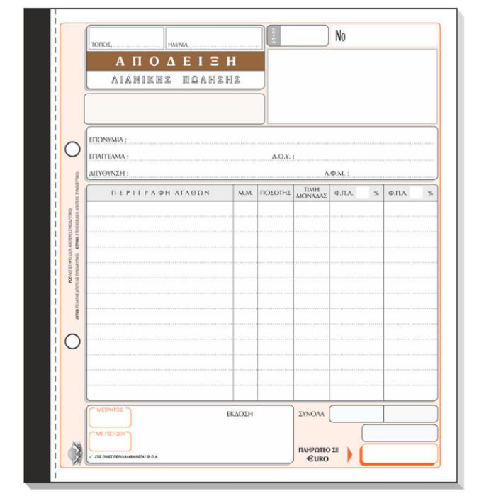 Απόδειξη λιανικών συναλλαγών (λιανικές πωλήσεις) 209Έντυπο για λιανικές πωλήσεις προς ιδιώτες