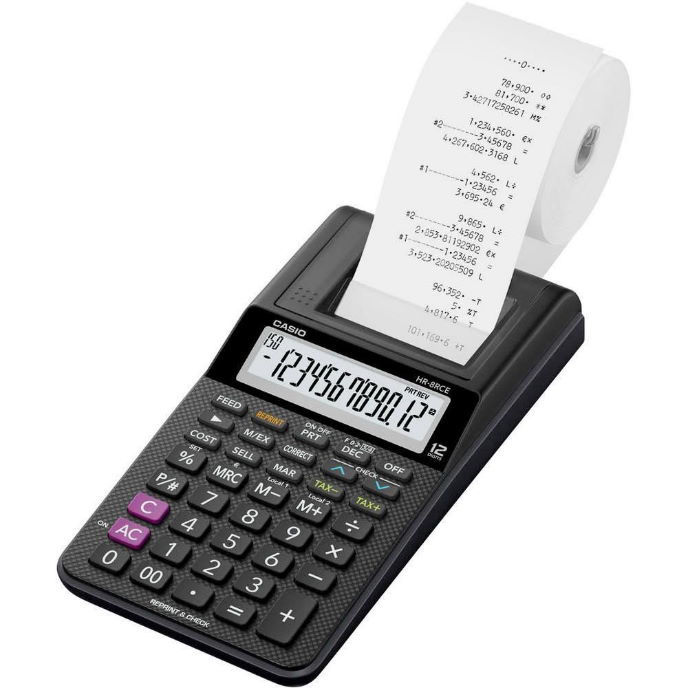 Αρισθμομιχανη Casio HR-8RCE φορητός υπολογιστής με κομψό σχεδιασμό. Διαθέτει πολλά χαρακτηριστικά με γρήγορη ήσυχη ταχύτητα εκτύπωσης 2 γραμμών ανά δευτερόλεπτο.