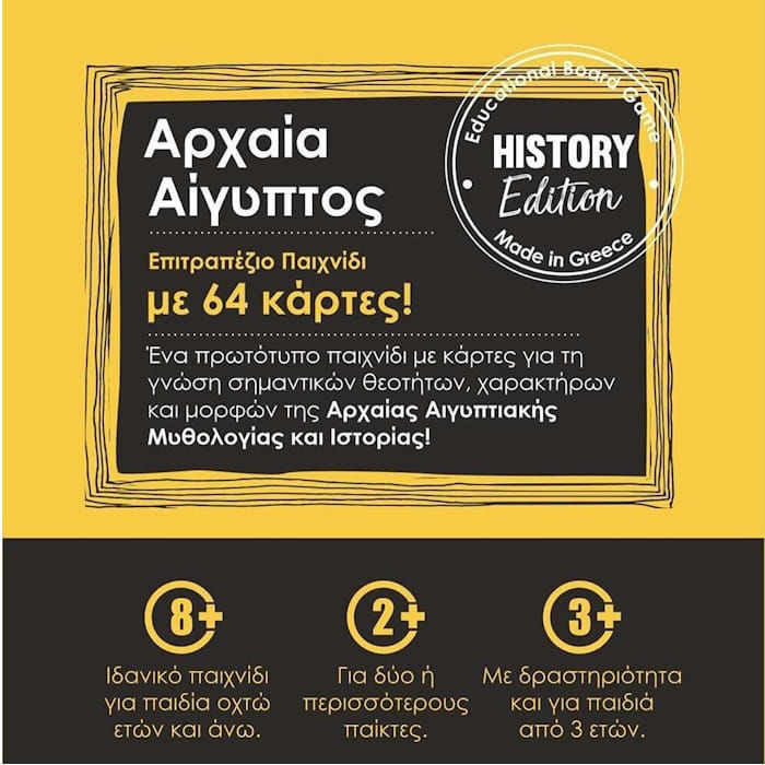 Οι κύβοι φέρουν λεπτομερείς αναπαραστάσεις που περιλαμβάνουν τη ζωή των Φαραώ, τη διαδικασία κατασκευής των Πυραμίδων, το σύστημα των ιερογλυφικών και τη σημασία του ποταμού Νείλου. Το παιχνίδι ενθαρρύνει την κριτική σκέψη και την ικανότητα επίλυσης προβλημάτων, καθώς το παιδί καλείται να συνδυάσει τις πληροφορίες και να ανασυνθέσει ιστορικά σενάρια. Είναι το ιδανικό εργαλείο για την ενίσχυση της ιστορικής μνήμης και την καλλιέργεια του ενδιαφέροντος για τις ανθρωπιστικές επιστήμες με τρόπο ευχάριστο και κατανοητό.
