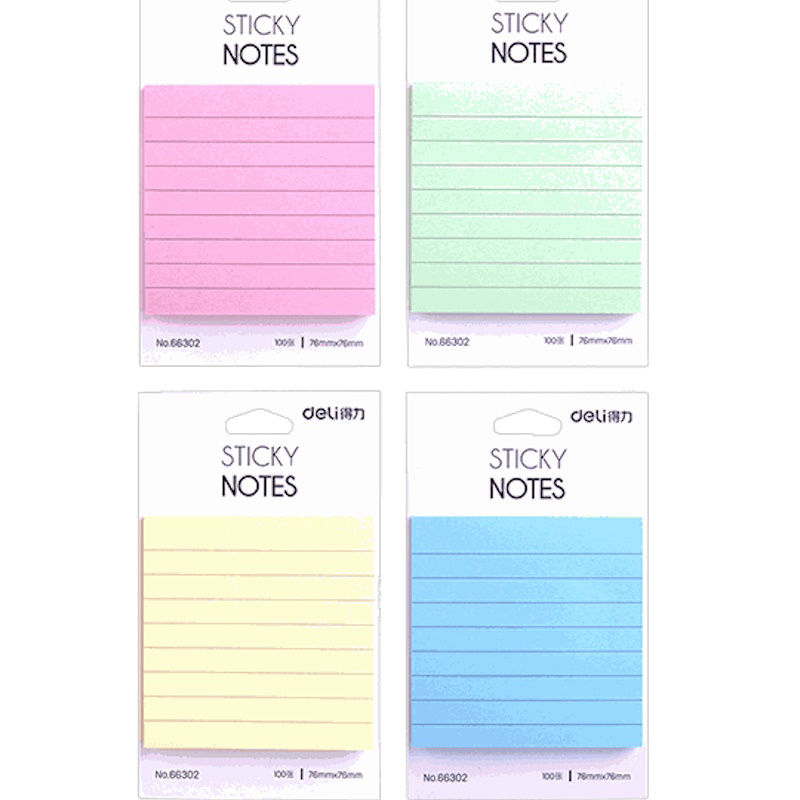 Αυτοκόλλητα χαρτάκια σημειώσεων της Deli για να μην χρειάζεται να θυμάσαι τα πάντα. Είναι διαθέσιμα σε 4 διαφορετικά χρώματα για να ξεχωρίζεις τις σημειώσεις σου. Ιδανική επιλογή για τις σημειώσεις στο γραφείο ή το σχολείο. Μπορούν να χρησιμοποιηθούν και ως σελιδοδείκτες για να μην χάνεις τις σημαντικές σελίδες.