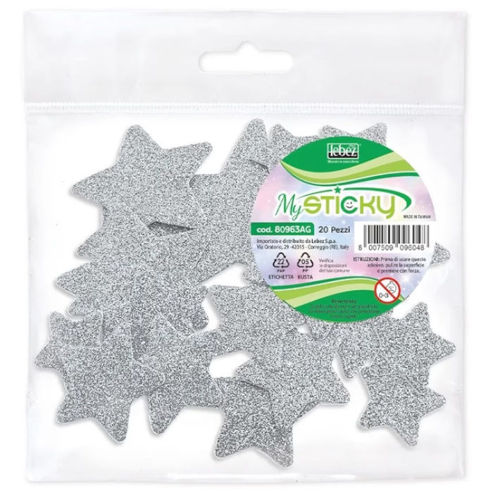 Αφρώδη Lebez αυτοκόλλητα αστέρια 20τεμ. ασημί
