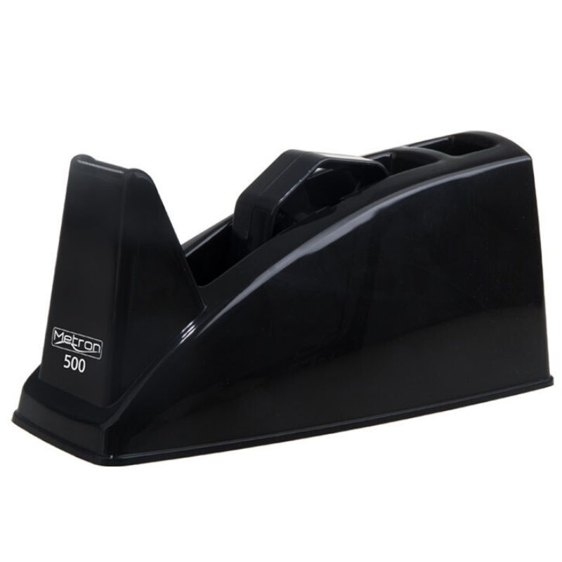 Βάση κολλητικής ταινίας Metron, με θέσεις για στυλό ή μολύβι.Κατάλληλη για ταινίες διαστάσεων 19mm x 66m ή μικρότερες.Διαθέτει αντιολισθητική βάση.
