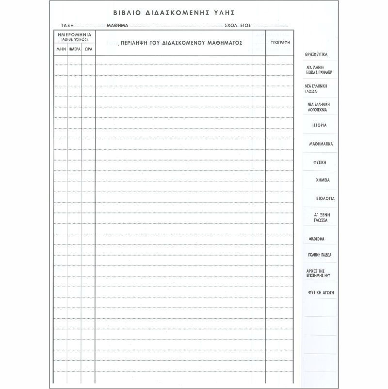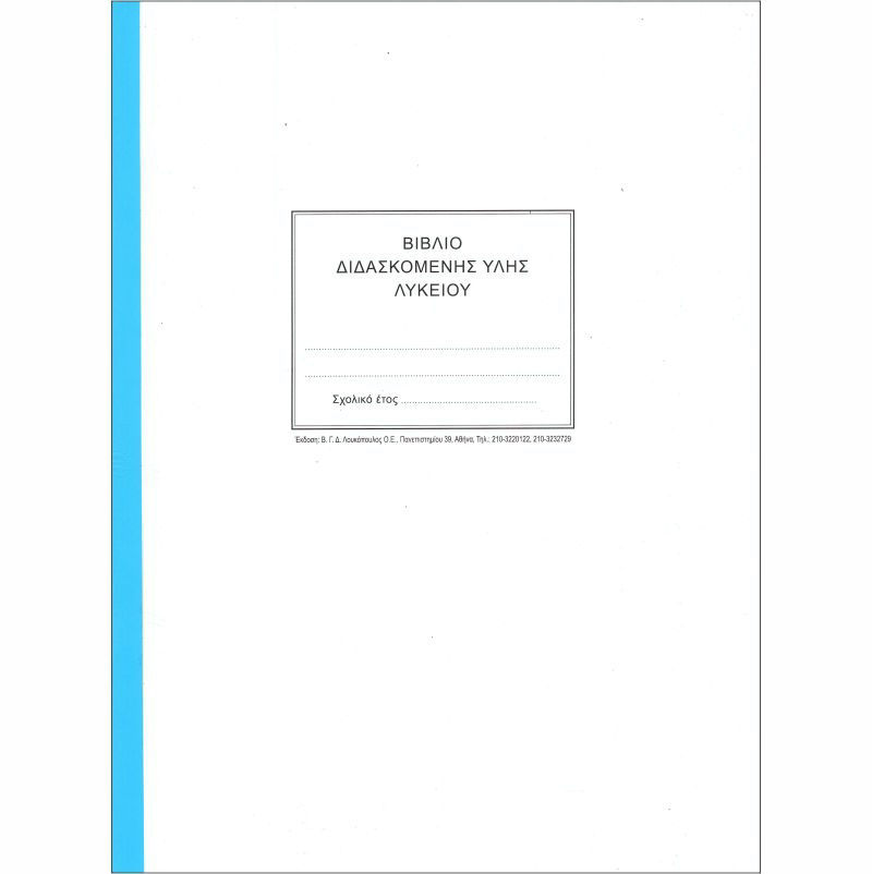 Το βιβλίο διδασκόμενης ύλης Λυκείου δημιουργήθηκε για οργανωμένη παρακολούθηση της καθημερινής διδασκαλίας σε όλες τις τάξεις. Η διάταξή του βοηθά τον εκπαιδευτικό να καταγράφει με ευκολία την πρόοδο κάθε μαθήματος μέσα στη σχολική χρονιά.