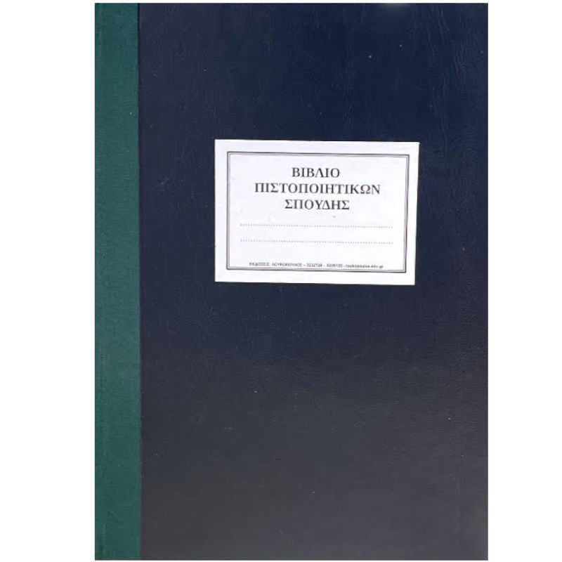 Βιβλίο πιστοποιητικών σπουδής σε διάσταση Α4 και 100 φύλλων