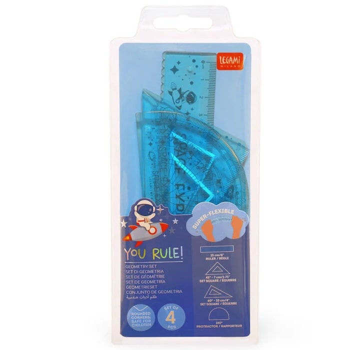 Το σετ γεωμετρικών οργάνων Legami Space – You Rule! φέρνει το διάστημα… στο θρανίο! Με μοντέρνο, εμπνευσμένο design γεμάτο πλανήτες και πυραύλους, είναι η ιδανική επιλογή για κάθε μαθητή που αγαπά τις επιστήμες και το διάστημα.