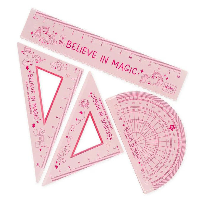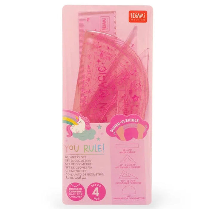 Το σετ γεωμετρικών οργάνων Legami Unicorn – You Rule! συνδυάζει πρακτικότητα και φαντασία για κάθε παιδί που αγαπά τις σχολικές κατασκευές με στιλ. Με πολύχρωμο design και παιχνιδιάρικες λεπτομέρειες, το σετ φέρνει χαρά σε κάθε μαθηματική άσκηση ή τεχνικό σχέδιο.