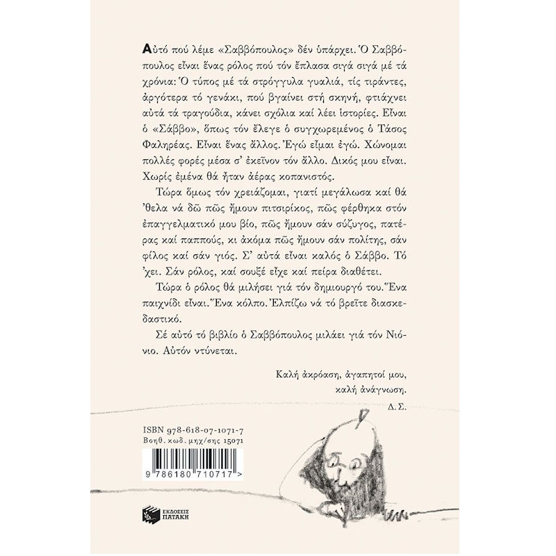 Σε αυτό το βιβλίο ο Σαββόπουλος μιλάει για τον Νιόνιο. Αυτόν ντύνεται.