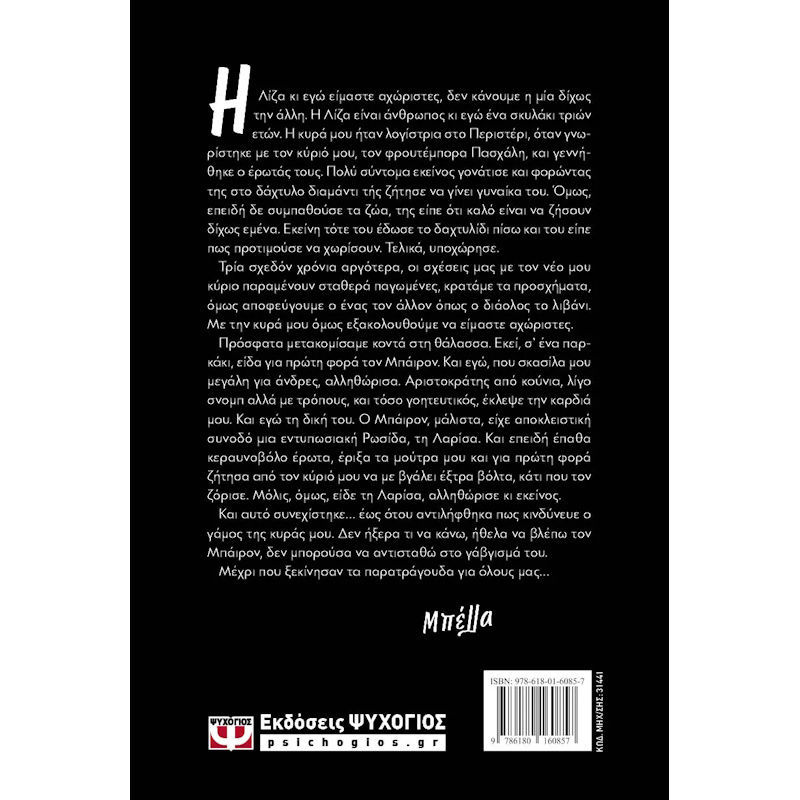 Η Λίζα κι εγώ είμαστε αχώριστες, δεν κάνουμε η μία δίχως την άλλη. Η Λίζα είναι άνθρωπος κι εγώ ένα σκυλάκι τριών ετών. Η κυρά μου ήταν λογίστρια στο Περιστέρι, όταν γνωρίστηκε με τον κύριό μου, τον φρουτέμπορα Πασχάλη, και γεννήθηκε ο έρωτάς τους. Πολύ σύντομα εκείνος γονάτισε και φορώντας της στο δάχτυλο διαμάντι τής ζήτησε να γίνει γυναίκα του. Όμως, επειδή δε συμπαθούσε τα ζώα, της είπε ότι καλό είναι να ζήσουν δίχως εμένα. Εκείνη τότε του έδωσε το δαχτυλίδι πίσω και του είπε πως προτιμούσε να χωρίσουν. Τελικά, υποχώρησε.