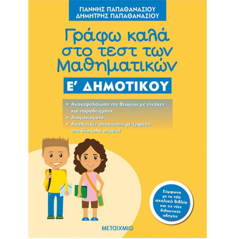 Συγκεκριμένα, το βιβλίο Γράφω καλά στο τεστ των Μαθηματικών για τους μαθητές της Ε΄ Δημοτικού είναι οργανωμένο σε ενότητες και καθεμιά περιλαμβάνει: