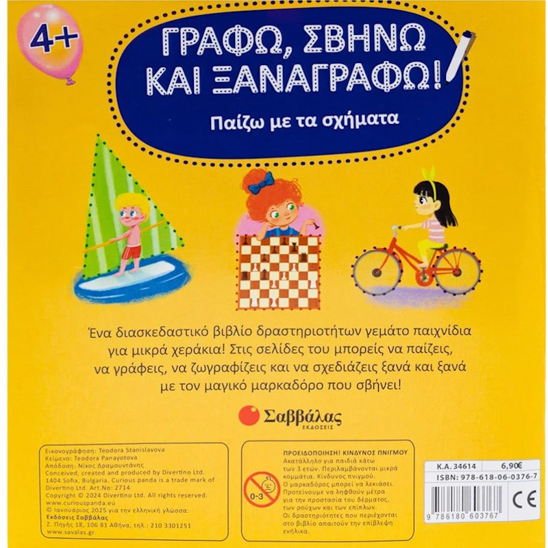 Ένα διασκεδαστικό βιβλίο δραστηριοτήτων γεμάτο παιχνίδια για μικρά χεράκια! Στις σελίδες του μπορείς να παίζεις, να γράφεις, να ζωγραφίζεις και να σχεδιάζεις ξανά και ξανά με τον μαγικό μαρκαδόρο που σβήνει!