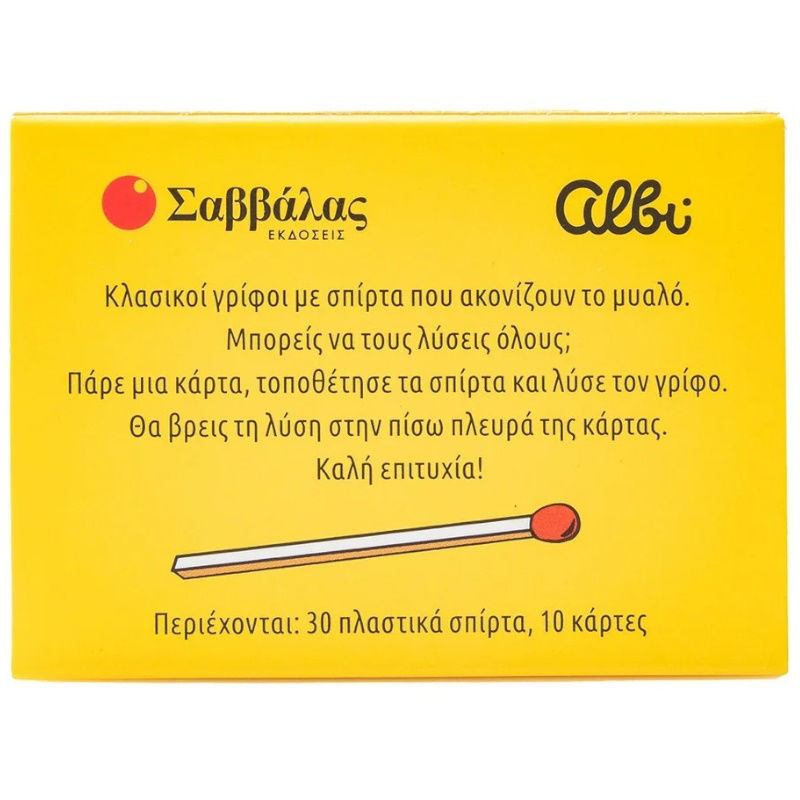 Πάρε μια κάρτα, τοποθέτησε τα σπίρτα και λύσε τον γρίφο. Θα βρεις τη λύση στην πίσω πλευρά της κάρτας.