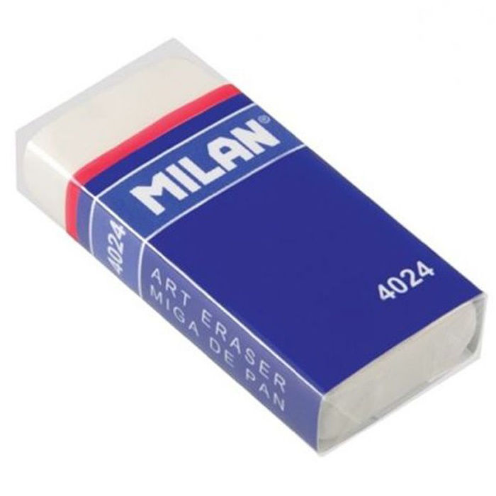Γόμα λευκή για μολύβι 4024 MilanΓόμα από συνθετικό καουτσούκ . Για να διαγράψετε ένα ευρύ φάσμα από μολύβια, σε όλα τα είδη χαρτιών. Τυλιγμένο από μπλε χαρτόνι και ατομικά τυλιγμένο.