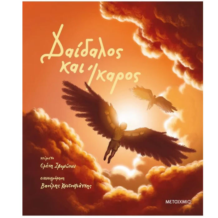 Πάνω από τη γη είναι ένα όμορφο παλάτι. Το πιο ωραίο ίσως ανάκτορο που χτίστηκε ποτέ στην Κρήτη και σε όλη την Ελλάδα: η Κνωσός. Κάτω από τη γη όμως, στο υπόγειο του παλατιού, βρίσκεται ένας σκοτεινός λαβύρινθος. Είναι η φυλακή του τέρατος που τρέφεται με ανθρώπινη σάρκα, του Μινώταυρου. Κανείς ποτέ δεν μπορεί να βρει τον δρόμο για να βγει από τον λαβύρινθο. Δημιουργός του είναι πιο άξιος αρχιτέκτονας και τεχνουργός του κόσμου, ο Δαίδαλος. Μόνο που καταλήγει κι ο ίδιος φυλακισμένος στο δημιούργημά του. Ο Δαίδαλος και ο γιος του ο Ίκαρος καταδικάζονται από τον βασιλιά Μίνωα να ζούνε για πάντα στον λαβύρινθο. Τώρα πρέπει να ψάξουν έναν τρόπο να δραπετεύσουν. Ποια θαυμαστή κατασκευή θα επινοήσει ο πατέρας; Τι οδηγίες χρήσης θα δώσει στον γιο του; Πόσο εύκολο είναι να ακολουθήσει ο γιος πιστά τις οδηγίες αυτές; Μα πρέπει να το κάνει αυτό; Μήπως είναι πιο ωραίο να ανοίξει τα φτερά του για κόσμους που ο πατέρας του ούτε που ονειρεύτηκε; Ο ουρανός είναι το όριο όταν είσαι νέος…