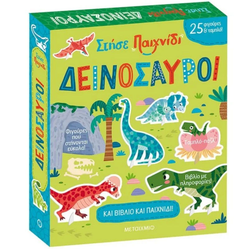 Στήσε εύκολα τις φιγούρες και συναρμολόγησε το ταμπλό-παζλ. Βρες στο βιβλίο ένα σωρό πληροφορίες για τους δεινόσαυρους, που θα εξάψουν τη φαντασία σου. Πάνω από 50 πληροφορίες για τους δεινόσαυρους! Το παιχνίδι ξεκινάει!