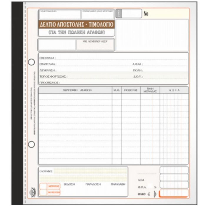 Δελτίο αποστολής - τιμολόγιο (πώλησης αγαθών) Για διακινήσεις - πωλήσεις αγαθών που υπάγονται σε μια κατηγορία ΦΠΑ