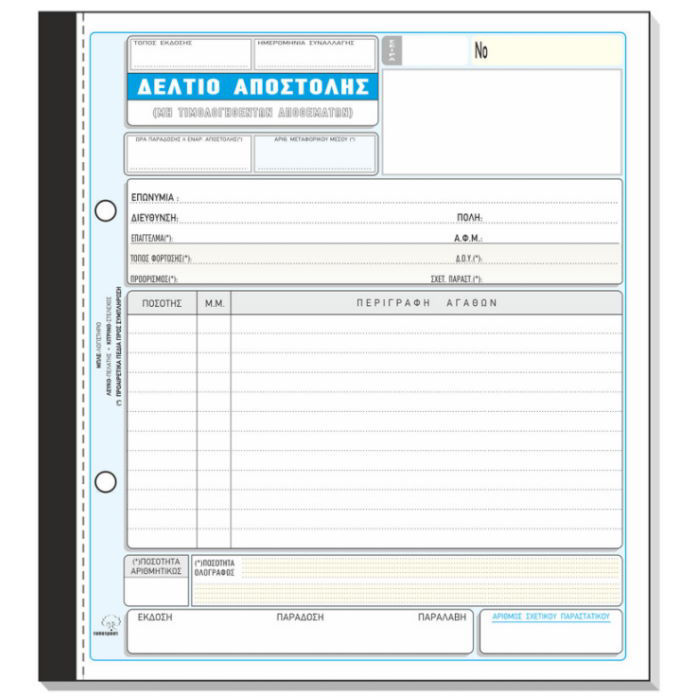 Έντυπο Δελτίο Αποστολής 267 Έντυπο μη τιμολογηθέντων αποθεμάτων