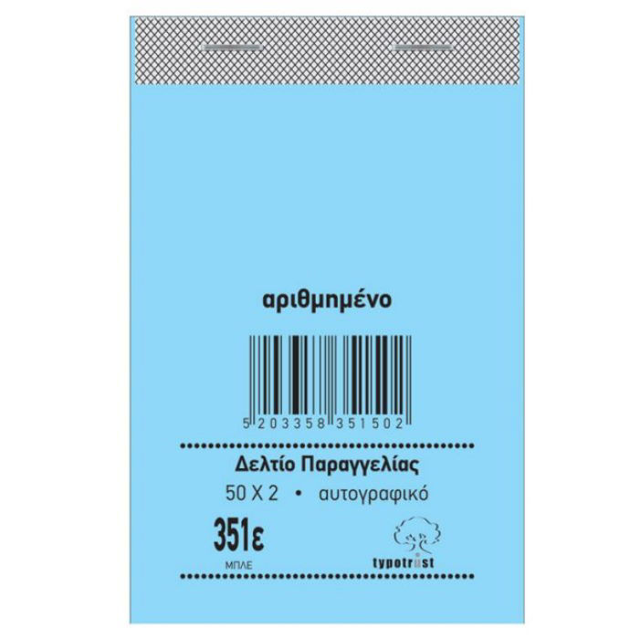 Δελτίο παραγγελίας αριθμημένο μπλε 50x2 351ε Typotrust