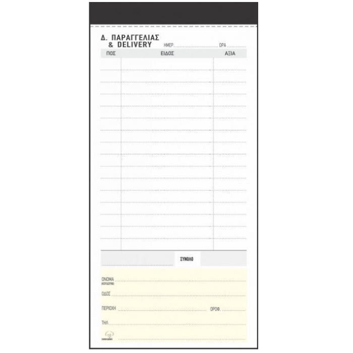 Τύπος: Μπλοκ Παραγγελιών Εστιατορίου