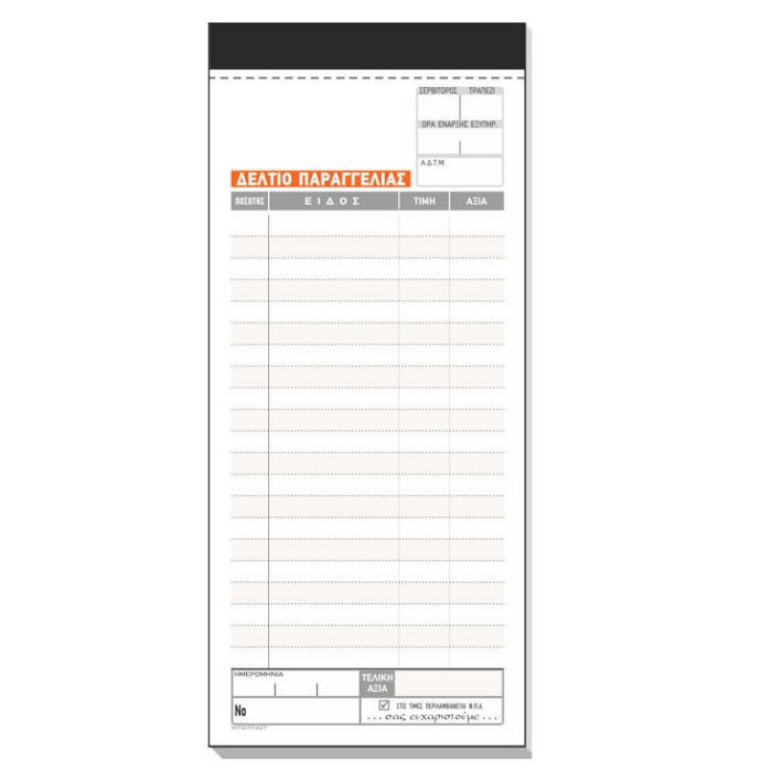 - Τύπος: Μπλοκ Παραγγελιών Εστιατορίου