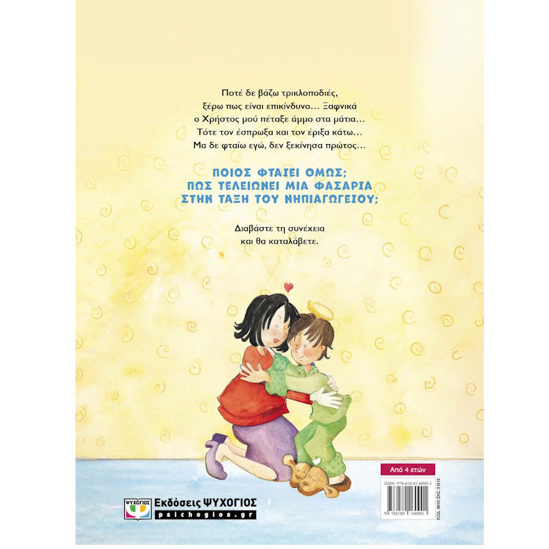 Ποτέ δε βάζω τρικλοποδιές, ξέρω πως είναι επικίνδυνο… Ξαφνικά ο Χρήστος μού πέταξε άμμο στα μάτια… Τότε τον έσπρωξα και τον έριξα κάτω… Μα δε φταίω, εγώ, δεν ξεκίνησα πρώτος… Ποιος φταίει όμως; Πώς τελειώνει μια φασαρία στην τάξη του νηπιαγωγείου; Διαβάστε τη συνέχεια και θα καταλάβετε.