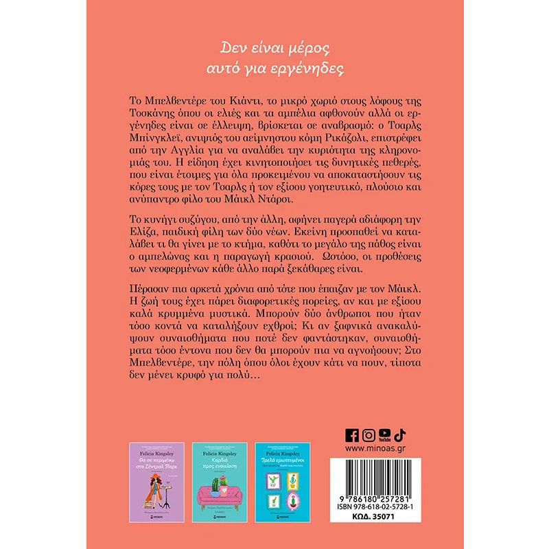 To Μπελβεντέρε του Κιάντι, το μικρό χωριό στους λόφους της Τοσκάνης όπου οι ελιές και τα αμπέλια αφθονούν αλλά οι εργένηδες είναι σε έλλειψη, βρίσκεται σε αναβρασμό: ο Τσαρλς Μπίνγκλεϊ, ανιψιός του αείμνηστου κόμη Ρικάζολι, επιστρέφει από την Αγγλία για να αναλάβει την κυριότητα της κληρονομιάς του. Η είδηση έχει κινητοποιήσει τις δυνητικές πεθερές, που είναι έτοιμες για όλα προκειμένου να αποκαταστήσουν τις κόρες τους με τον Τσαρλς ή τον εξίσου γοητευτικό, πλούσιο και ανύπαντρο φίλο του Μάικλ Ντάρσι. Το κυνήγι συζύγου, από την άλλη, αφήνει παγερά αδιάφορη την Ελίζα, παιδική φίλη των δύο νέων. Εκείνη προσπαθεί να καταλάβει τι θα γίνει με το κτήμα, καθότι το μεγάλο της πάθος είναι ο αμπελώνας και η παραγωγή κρασιού. Ωστόσο, οι προθέσεις των νεοφερμένων κάθε άλλο παρά ξεκάθαρες είναι. Πέρασαν πια αρκετά χρόνια από τότε που έπαιζαν με τον Μάικλ. Η ζωή τους έχει πάρει διαφορετικές πορείες, αν και με εξίσου καλά κρυμμένα μυστικά. Μπορούν δύο άνθρωποι που ήταν τόσο κοντά να καταλήξουν εχθροί; Κι αν ξαφνικά ανακαλύψουν συναισθήματα που ποτέ δεν φαντάστηκαν, συναισθήματα τόσο έντονα που δεν θα μπορούν πια να αγνοήσουν; Στο Μπελβεντέρε, την πόλη όπου όλοι έχουν κάτι να πουν, τίποτα δεν μένει κρυφό για πολύ…