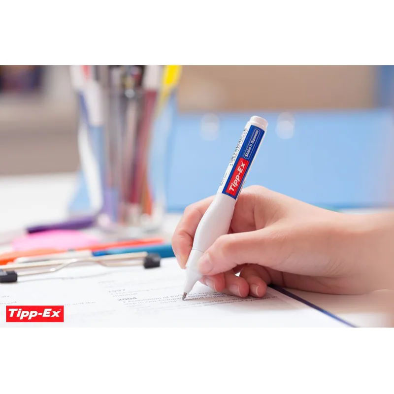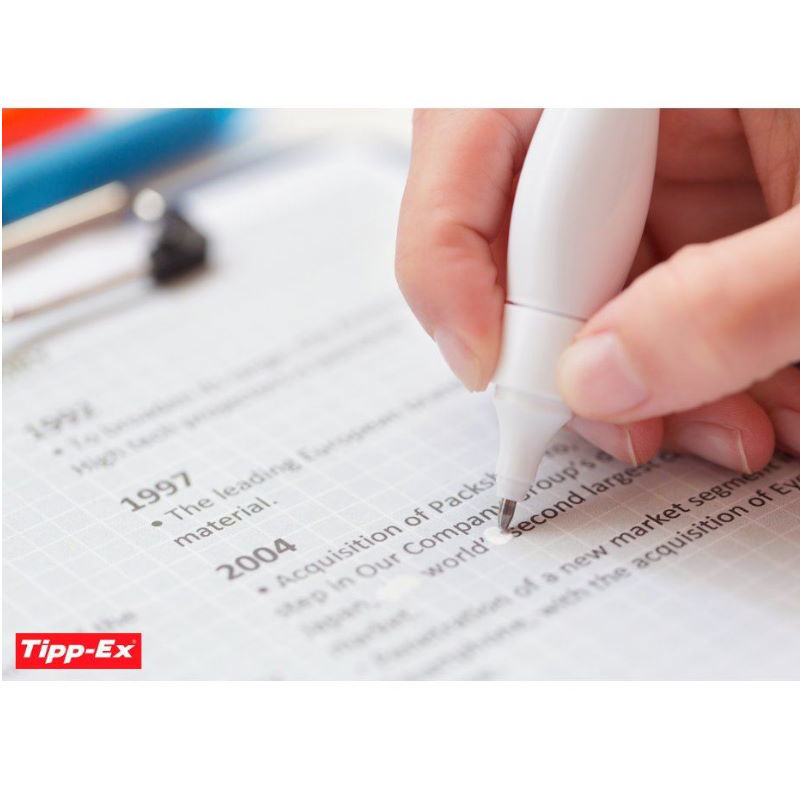 Διορθωτικό υγρό Tipp-ex στυλό με ποσότητα 8 ml. Στεγνώνει γρήγορα και έχει σύστημα ελεγχόμενης ροής για εύκολη επανεγγραφή. Η λεπτή μεταλλική μύτη επιτρέπει την ακρίβεια στη διόρθωση.