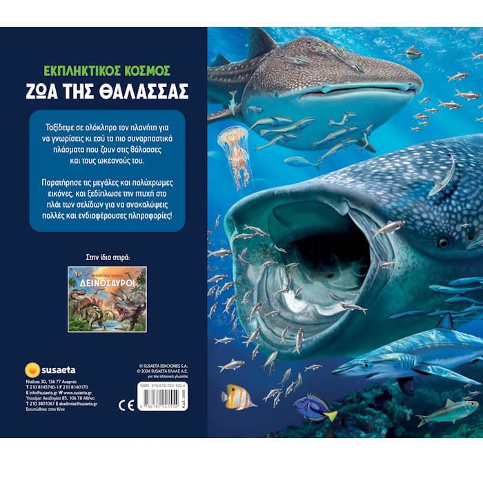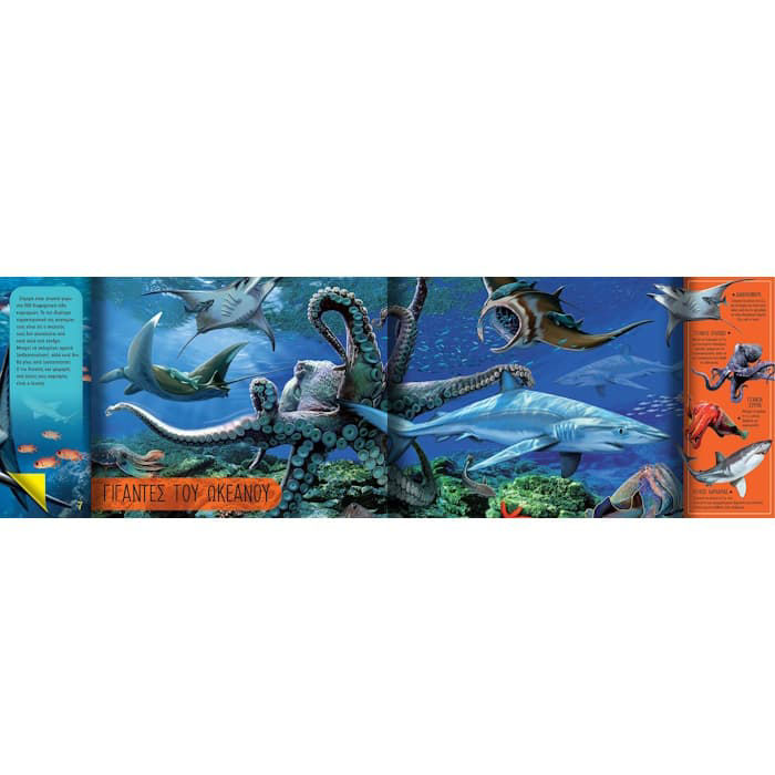 Ταξίδεψε σε ολόκληρο τον πλανήτη για να γνωρίσεις κι εσύ τα πιο συναρπαστικά πλάσματα που ζουν στις θάλασσες και τους ωκεανούς του. Παρατήρησε τις μεγάλες και πολύχρωμες εικόνες, και ξεδίπλωσε την πτυχή στο πλάι των σελίδων για να ανακαλύψεις πολλές και ενδιαφέρουσες πληροφορίες!