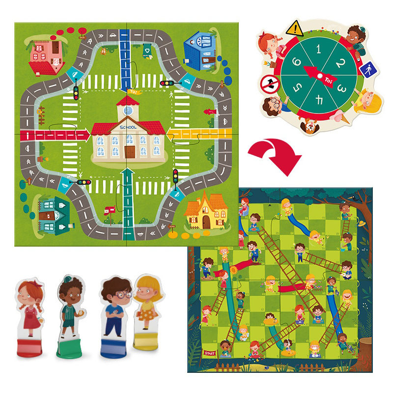 Ένα επιτραπέζιο που θα ενθουσιάσει τα παιδιά καθώς συνδυάζει 2 διαφορετικά παιχνίδια: Τον Γκρινιάρη και το Φιδάκι! Στο πρώτο, τα παιδιά πρέπει να βοηθήσουν τους χαρακτήρες να φτάσουν, με ασφάλεια, απο το σπίτι στο σχολείο και με αυτόν τον τρόπο μαθαίνουν βασικούς κανόνες κυκλοφοριακής αγωγής. Στο Φιδάκι, μαθαίνουν για τις καλές και τις κακιές συνήθειες μέσα απο ένα ταμπλό όπου πρέπει να μετακινήσουν τα πιόνια τους απο την εκκίνηση στον τερματισμό!