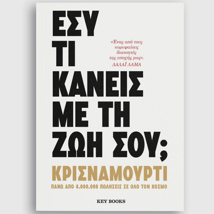 Με εκατομμύρια αναγνώστες σε όλο τον κόσμο, ο Κρισναμούρτι μας δείχνει ότι δεν χρειάζεται να ακολουθήσουμε κάποιο συγκεκριμένο μονοπάτι, μία ανώτερη εξουσία ή έναν πνευματικό ηγέτη. Το μόνο που μετράει είναι το πώς εμείς επιλέγουμε να ζήσουμε την ζωή μας, με υπευθυνότητα απέναντι στον εαυτό μας και τους γύρω μας.