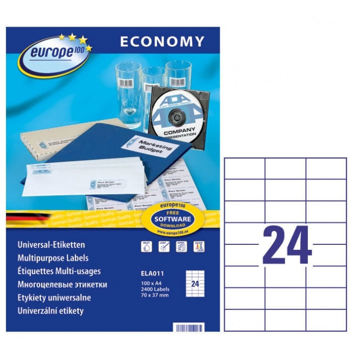 - Περιεχόμενο ή Πλήθος: 100 φύλλα (24 ετικέτες ανά φύλλο)