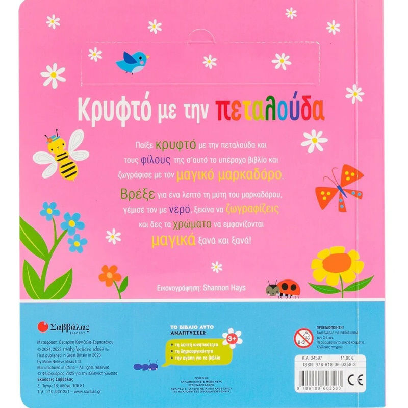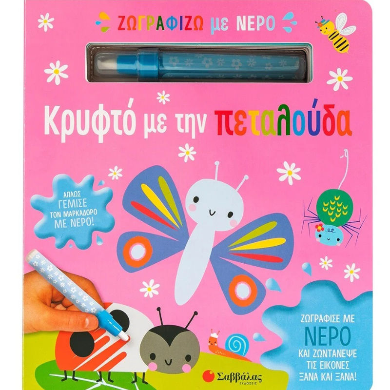 Παίξε κρυφτό με την πεταλούδα και τους φίλους της σ' αυτό το υπέροχο βιβλίο και ζωγράφισε με τον μαγικό μαρκαδόρο.