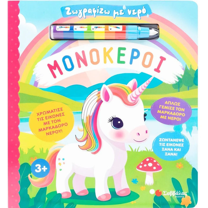 Γέμισε απλώς τον μαρκαδόρο με νερό και άρχισε να χρωματίζεις τις εικόνες. Δες τα χρώματα να εμφανίζονται με τρόπο μαγικό! Όταν στεγνώσει το νερό, μπορείς να χρωματίσεις και πάλι τη σελίδα ξανά και ξανά! Το ιδανικό βιβλίο για να μάθεις να ζωγραφίζεις χωρίς λεκέδες!