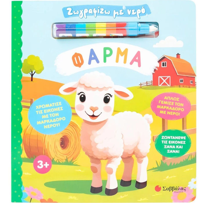 Γέμισε απλώς τον μαρκαδόρο με νερό και άρχισε να χρωματίζεις τις εικόνες. Δες τα χρώματα να εμφανίζονται με τρόπο μαγικό! Όταν στεγνώσει το νερό, μπορείς να χρωματίσεις και πάλι τη σελίδα ξανά και ξανά! Το ιδανικό βιβλίο για να μάθεις να ζωγραφίζεις χωρίς λεκέδες!