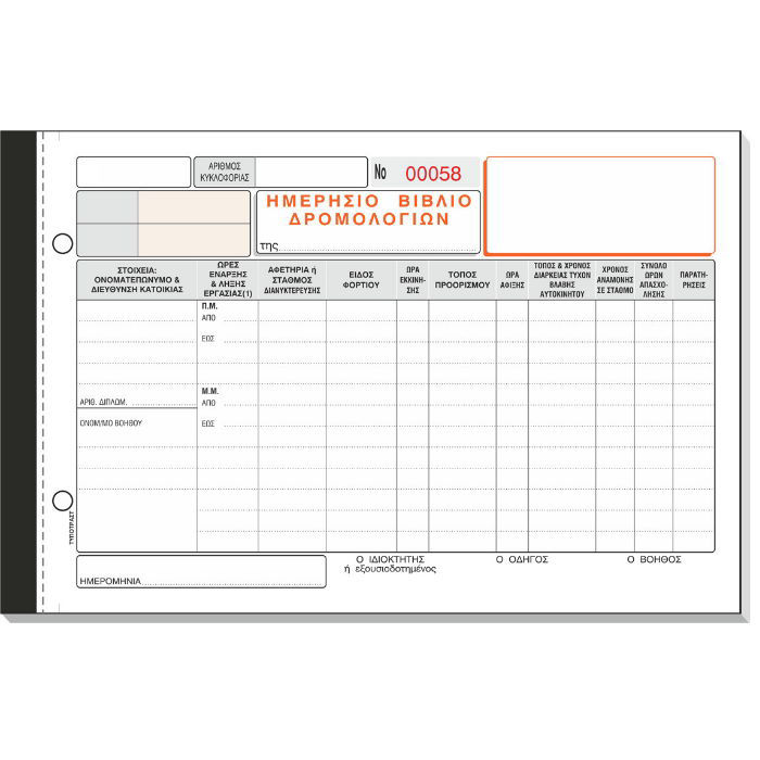Ημερήσιο δελτίο ημερολογίων αριθμημένο Έντυπο επαγγελματικού αυτοκινήτου , ισχύος τριών μηνών με αρίθμηση από το 1 έως το 92
