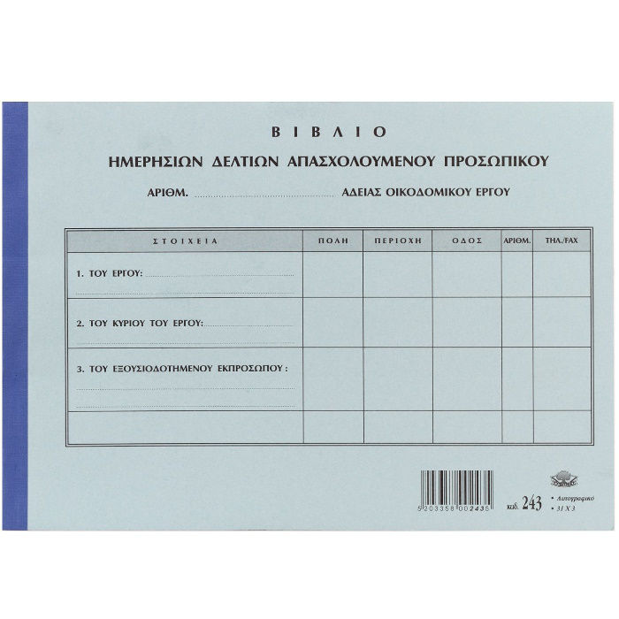 Ημερήσιο δελτίο απασχολούμενου προσωπικού οικοδομών 31Χ3 243 Τυποτράστ