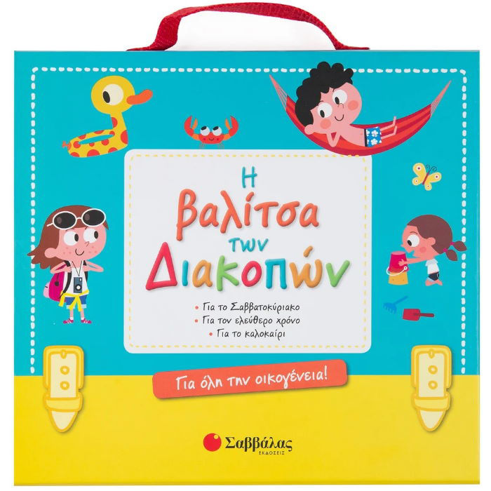 Μια πρωτότυπη και πρακτική βαλίτσα που περιέχει διασκεδαστικά παιχνίδια για όλη την οικογένεια! Περιλαμβάνει: Βιβλίο με γρίφους Παιχνίδι με κάρτες 2 επιτραπέζια παιχνίδια 4 πιόνια και 1 ζάρι