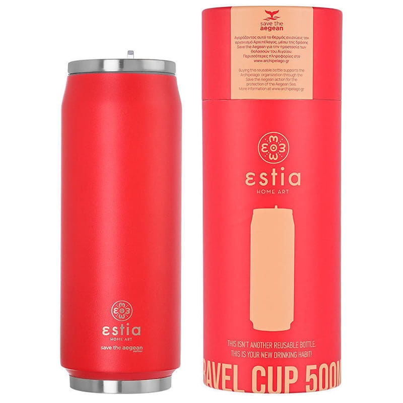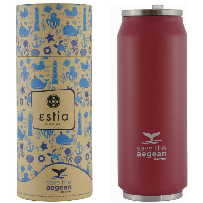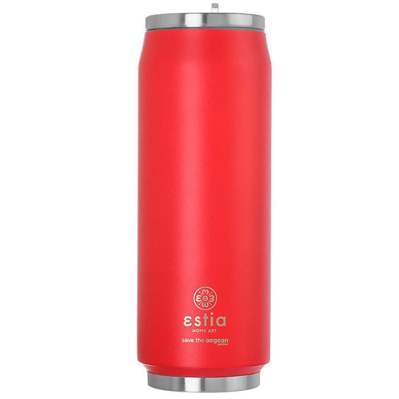 Θερμός ανοξέιδωτος Estia με καλαμάκι Scarlet Red Save the 500ml aegean 01-9854