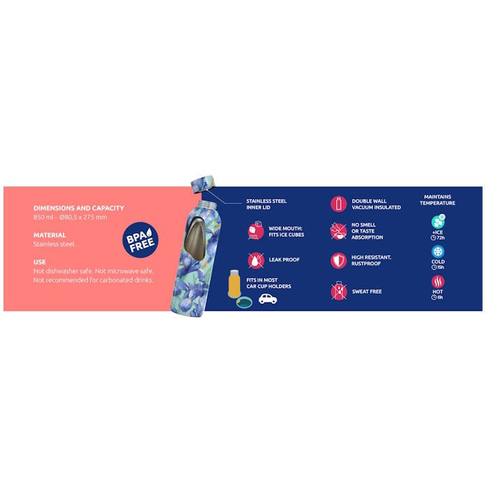 Το Quokka Stainless Steel Solid – Blue Hibiscus 510ml είναι ένα θερμός που δεν περνά απαρατήρητο. Με κομψό τροπικό σχέδιο ιβίσκου σε μπλε αποχρώσεις, αυτό το μπουκάλι φέρνει καλοκαιρινή διάθεση στην καθημερινότητά σου – ενώ παράλληλα προσφέρει προηγμένη θερμική απόδοση και μέγιστη αντοχή.
