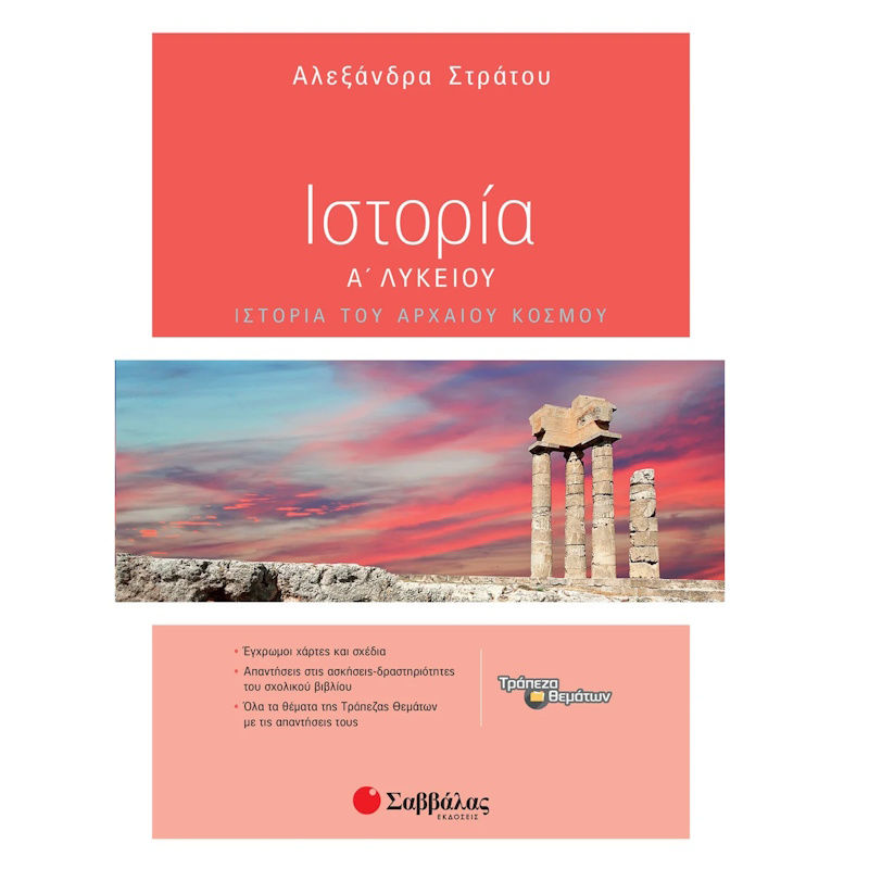 Το συγκεκριμένο βιβλίο είναι ένα πλήρες βοήθημα για το μάθημα «Ιστορία του αρχαίου κόσμου» της Α’ Λυκείου, με το οποίο γίνεται πιο εύκολα η κατανόηση και η εκμάθηση της ιστορίας. Η συγγραφή του έχει βασιστεί τόσο στις θεματικές ενότητες του βιβλίου όσο και στο νέο σύστημα αξιολόγησης, που βασίζεται στην Τράπεζα Θεμάτων Διαβαθμισμένης Δυσκολίας.