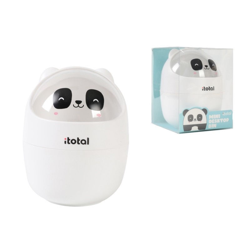 I-Total είναι ένα επιτραπέζιο καλάθι απορριμμάτων με χαριτωμένο σχέδιο γάτας, ιδανικό για χρήση σε γραφείο ή παιδικό δωμάτιο.