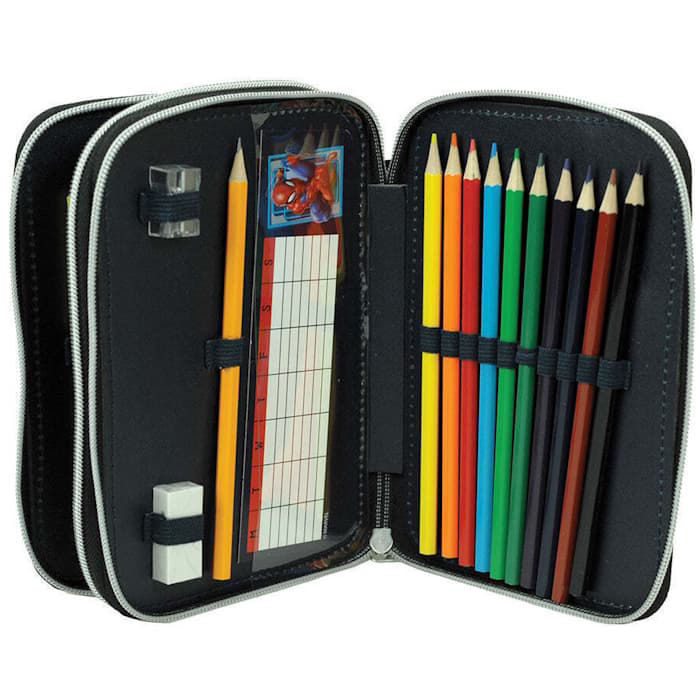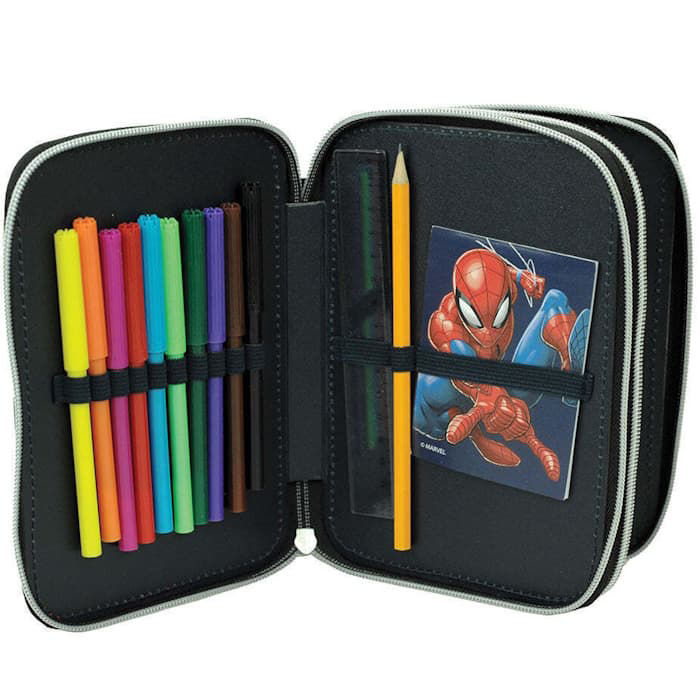 Η Κασετίνα διπλή γεμάτη Gim Spiderman Frame 337-10100 είναι μια σχολική κασετίνα με θέμα τον Spiderman, ιδανική για αγόρια. Έχει διπλή χωρητικότητα, δηλαδή δύο θήκες με φερμουάρ, προσφέροντας άφθονο χώρο για την αποθήκευση σχολικών ειδών.