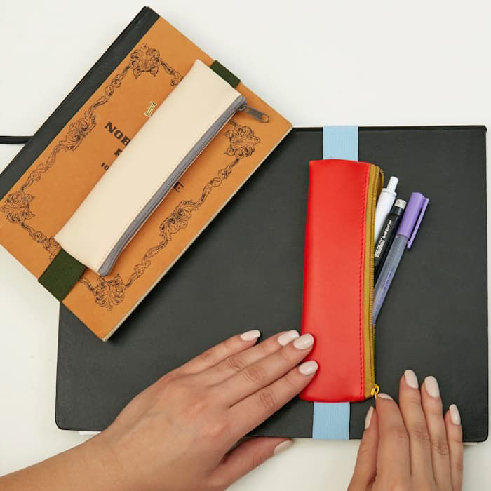 Η πρακτική κασετίνα-πορτοφολάκι της Kikkerland, με μοντέρνο λάστιχο συγκράτησης, είναι τέλεια για να κρατάς μπλοκ, βιβλία ή τετράδια ενώ φυλάσσει 3–4 στυλό ή μολύβια.