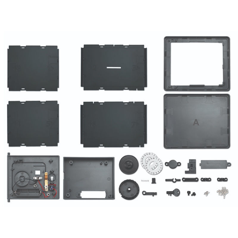 ΠΕΡΙΕΧΟΜΕΝΑ: Πλαίσιο πρόσοψης χρηματοκιβωτίου x1, Πλάτη χρηματοκιβωτίου x1, Πλαϊνές πλάκες χρηματοκιβωτίου x4, Κάλυμμα για το πίσω μέρος της πόρτας με κάλυμμα για τη θήκη μπαταρίας x1, Πόρτα χρηματοκιβωτίου x1, Καντράν x1, Οδοντωτό τροχό x1, Ανασταλτικός βραχίονας x1, Ελατήριο x1, Πλάκα συγκράτησης του ελατηρίου x1, Καλύμματα με μεντεσέδες x2, Ρυθμιστικό διακόπτη x1, Κάλυμμα για τον διακόπτη x1, Κάλυμμα κλειδαριάς x1, Μάνταλο κλειδαριάς x1, 1 Πλαίσιο πρόσοψης χρηματοκιβωτίου, Απλές βίδες, Βίδες με παξιμάδι x2, Καπάκια τερματικών x2, Αυτοκόλλητα με αριθμούς για το καντράν x2, Κλειδί x1.