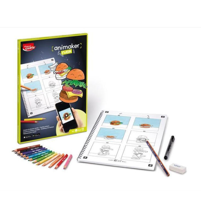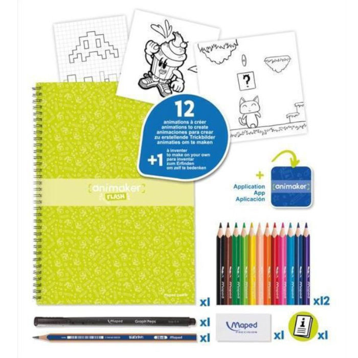 Το σετ περιλαμβάνει 1 τετράδιο σπιράλ Α4 (με 12+1 κινούμενα σχέδια), 12 mini ξυλομπογιές Strong, 1 μολύΒΙ Graph'peps, 1 μαύρο μαρκαδοράκι, 1 γόμα, 1 εγχειρίδιο και QR code video.
