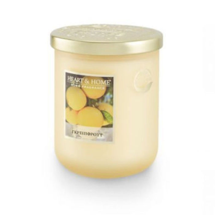 Μεσαίο κερί με άρωμα Μοσχομπίζελο σε γυάλινη συσκευασία της Heart & Home διάρκειας 30 ωρών.